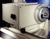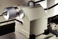 A munkadarabforgató orsó , 8 db P4 osztályú ferde hatásvonalú golyós- és görgős csapágyakkal van ellátva elöl és hátul. Ez biztosítja kiváló megmunkálási stabilitást és ideálissá teszi a berendezést a nagy igénybevételű megmunkálásra. FANUC szervo motoros hajtás. Az orsó biztosítja a központosító és szinkronizált mozgás funkciókat. Gyors munkadarabcsere a csúcsok között, vagy tokmányból. Az orsóház elfordítható 90 °-ban jobbra és 30 °-ban az óramutató járásával megegyező irányban, így a gép alkalmas a különböző köszörülési módokra.